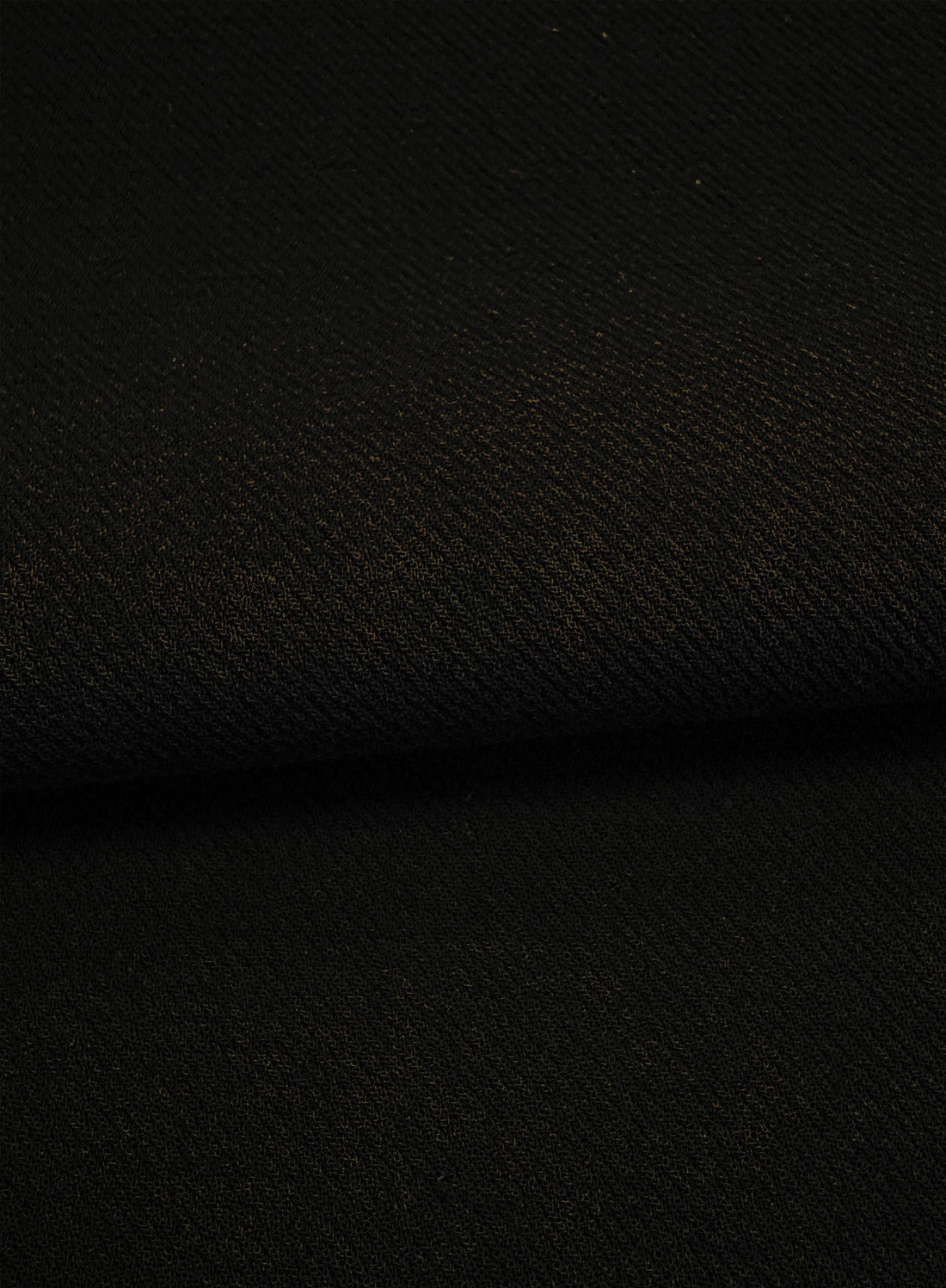 Short jacket in Oeko-Tex® certified viscose jacquard, lined, 2 piped pockets, long sleeves, 2 pleats at the shoulders, V-shaped cutout in the back. Closure at the top with a small invisible clasp.