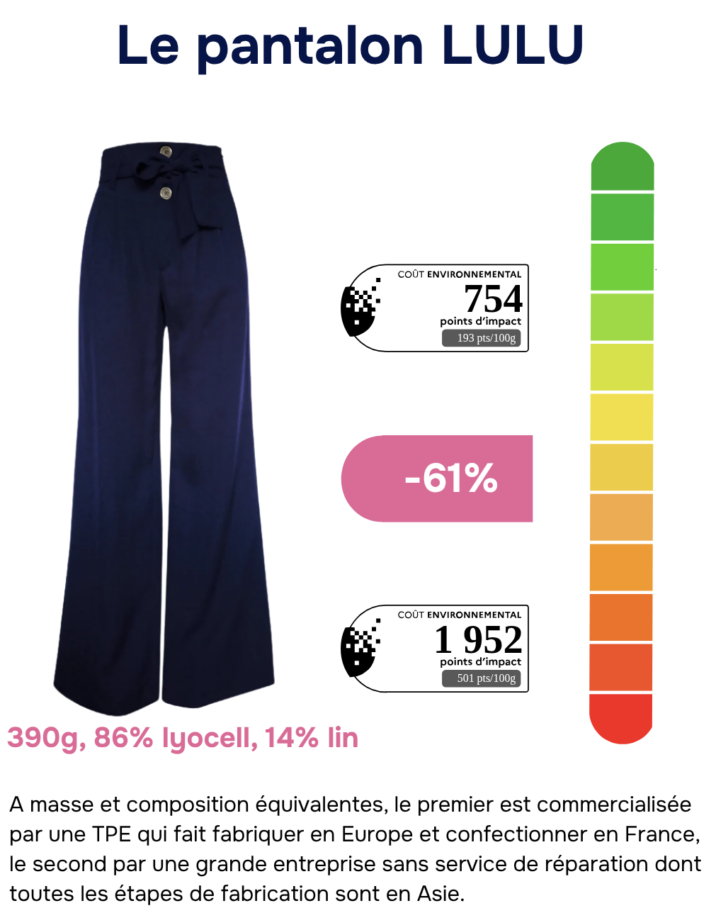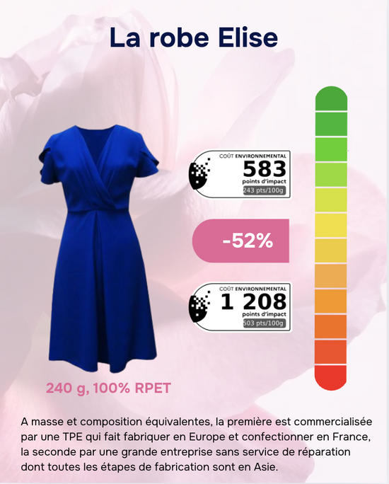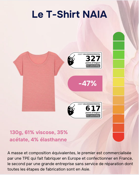 L’affichage environnemental consiste à apposer sur un produit textile un nombre en points d’impact indiquant son coût environnemental global.